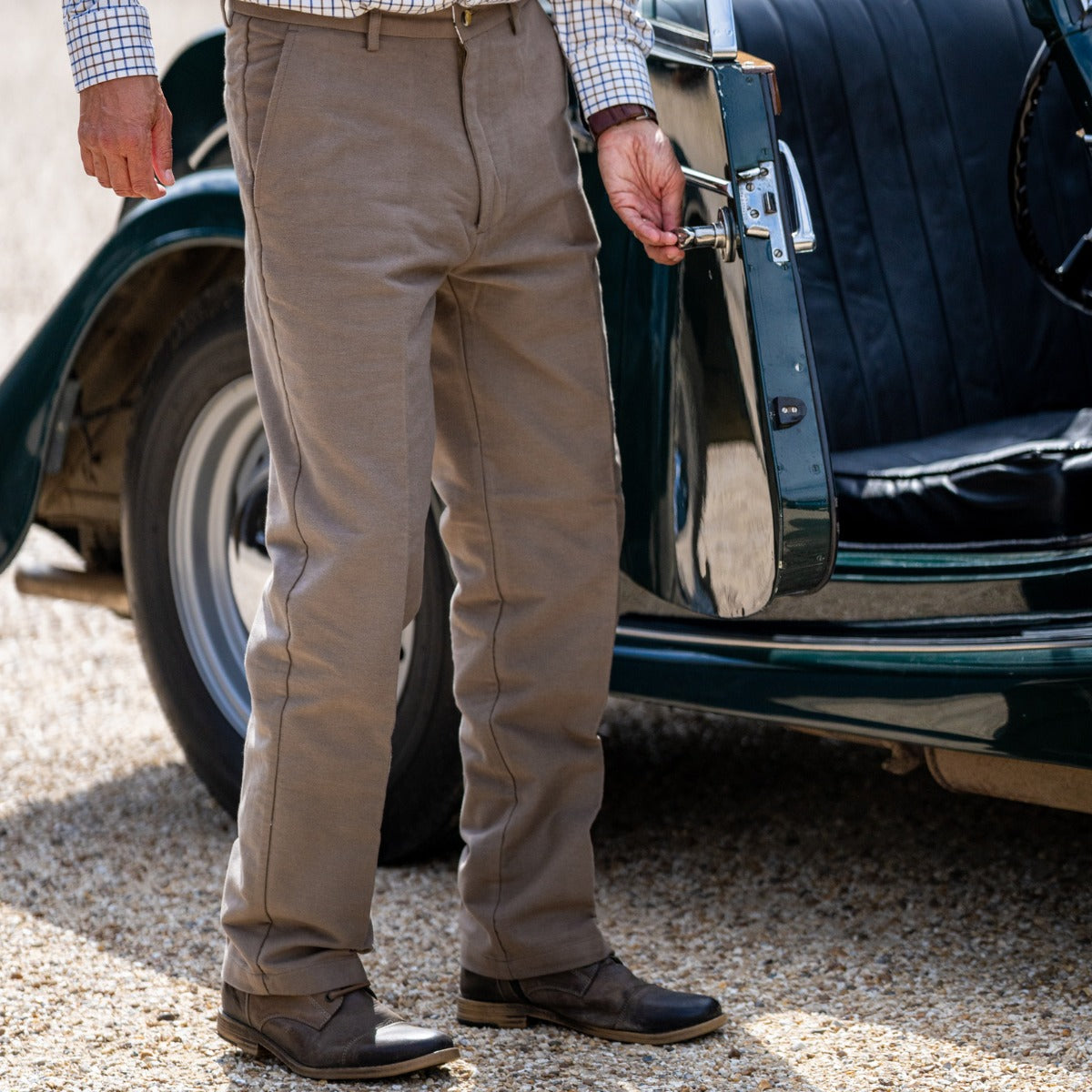Moleskin is a thick 100% cotton fabric brushed for warmth and durability. It even offers reasonable protection from brambles etc. New Forest Moleskins are a traditional trouser cut so they look smart and are comfortable but not too baggy.